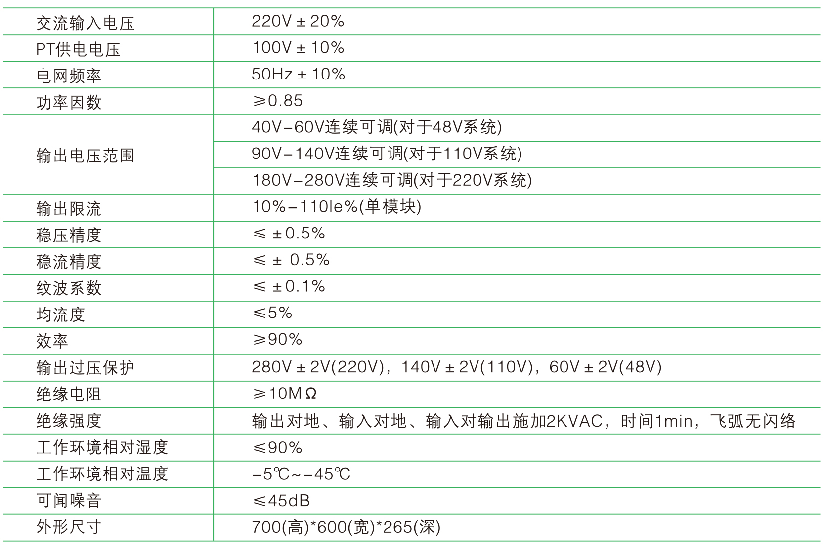 7.監(jiān)控器可實(shí)現(xiàn)電池電壓、控母電壓、控母電流、電池充放電電流、模塊狀態(tài)檢測(cè);模塊故障、母線電壓越限、主路交流失電、母線絕緣故障實(shí)時(shí)報(bào)警;